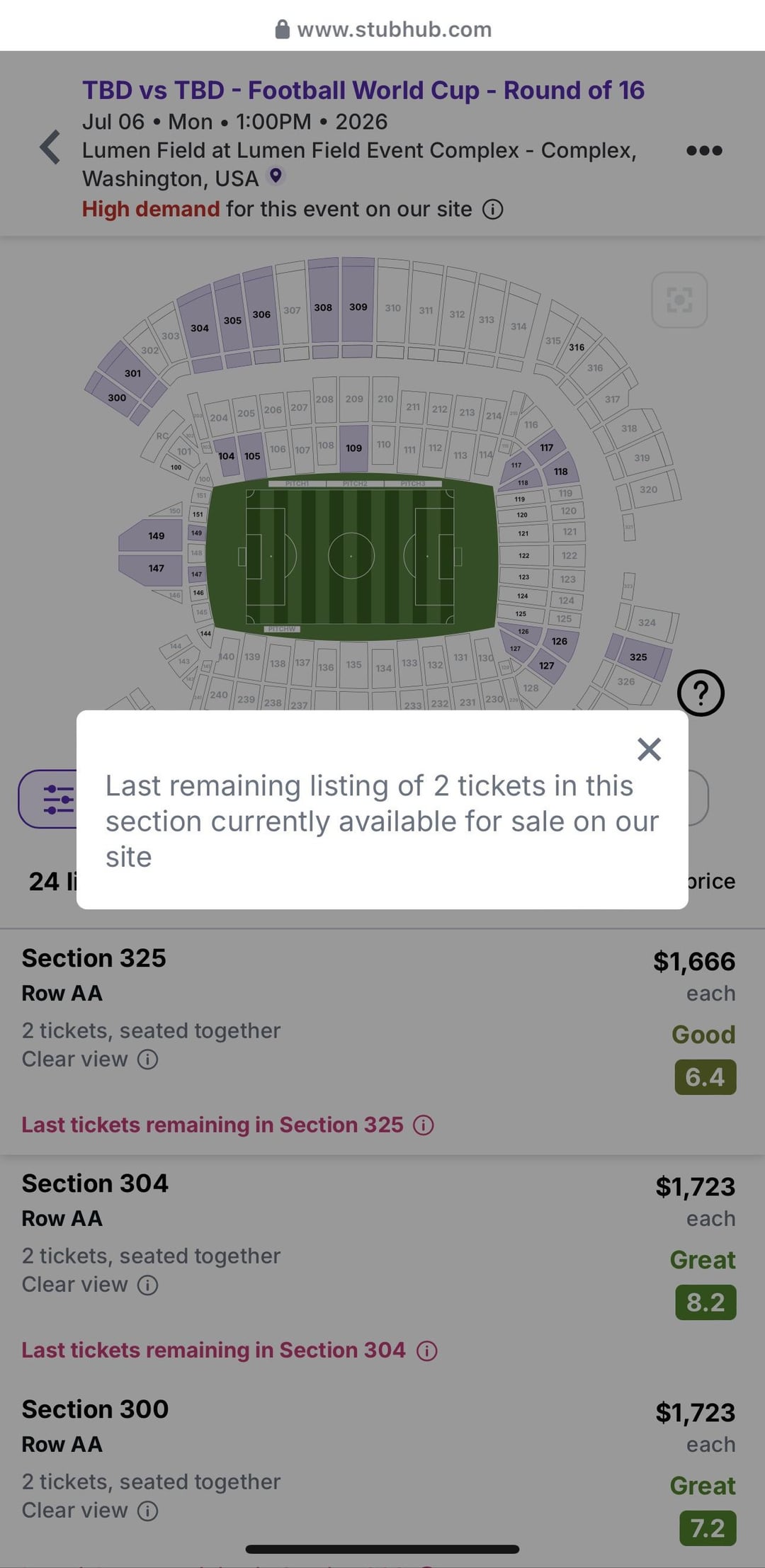 StubHub が 26′ WC のチケットを宣伝しているのに気づきました。もちろん、これはまだ不可能です。